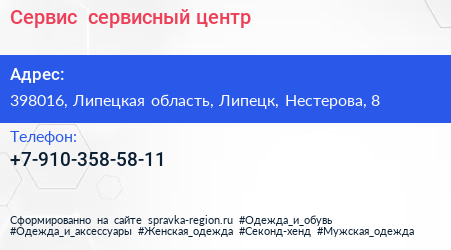 Сервис+, сервисный центр по адресу 398016, Липецкая область, Липецк, Нестерова, 8 в дальнейшем Организация, размещена в следующих категориях: