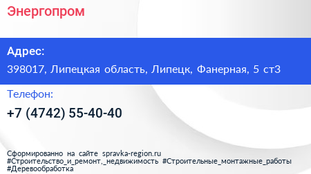 Энергопром по адресу 398017, Липецкая область, Липецк, Фанерная, 5 ст3 в дальнейшем Организация, размещена в следующих категориях:
