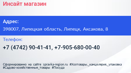 Инсайт, магазин по адресу 398007, Липецкая область, Липецк, Аксакова, 8 в дальнейшем Организация, размещена в следующих категориях: