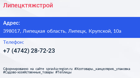 Липецктяжстрой по адресу 398017, Липецкая область, Липецк, Крупской, 10а в дальнейшем Организация, размещена в следующих категориях: