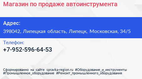 Магазин по продаже автоинструмента по адресу 398042, Липецкая область, Липецк, Московская, 34/5 в дальнейшем Организация, размещена в следующих категориях: