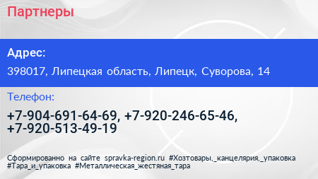 Партнеры по адресу 398017, Липецкая область, Липецк, Суворова, 14 в дальнейшем Организация, размещена в следующих категориях: