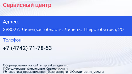 Сервисный центр по адресу 398027, Липецкая область, Липецк, Шерстобитова, 20 в дальнейшем Организация, размещена в следующих категориях: