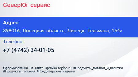 СеверЮг сервис по адресу 398016, Липецкая область, Липецк, Тельмана, 164а в дальнейшем Организация, размещена в следующих категориях: