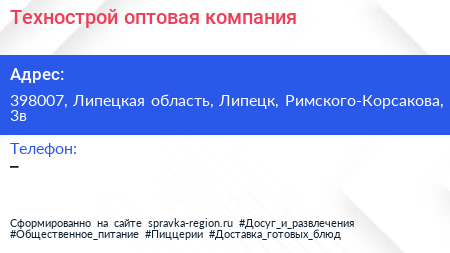 Технострой, оптовая компания по адресу 398007, Липецкая область, Липецк, Римского-Корсакова, 3в в дальнейшем Организация, размещена в следующих категориях: