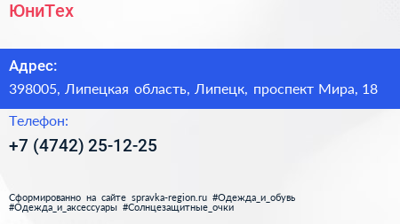 ЮниТех по адресу 398005, Липецкая область, Липецк, проспект Мира, 18 в дальнейшем Организация, размещена в следующих категориях: