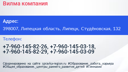 Вилма, компания по адресу 398007, Липецкая область, Липецк, Студёновская, 132 в дальнейшем Организация, размещена в следующих категориях: