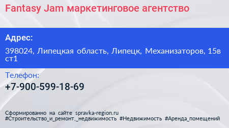 Fantasy Jam, маркетинговое агентство по адресу 398024, Липецкая область, Липецк, Механизаторов, 15в ст1 в дальнейшем Организация, размещена в следующих категориях: