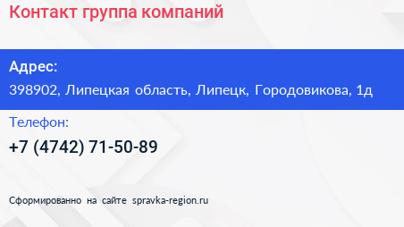 Контакт, группа компаний по адресу 398902, Липецкая область, Липецк, Городовикова, 1д в дальнейшем Организация, размещена в следующих категориях: