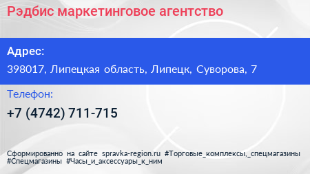 Рэдбис, маркетинговое агентство по адресу 398017, Липецкая область, Липецк, Суворова, 7 в дальнейшем Организация, размещена в следующих категориях: