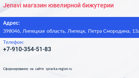 Jenavi, магазин ювелирной бижутерии по адресу 398046, Липецкая область, Липецк, Петра Смородина, 13а в дальнейшем Организация, размещена в следующих категориях: