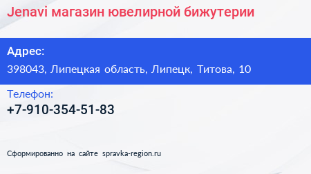 Jenavi, магазин ювелирной бижутерии по адресу 398043, Липецкая область, Липецк, Титова, 10 в дальнейшем Организация, размещена в следующих категориях: