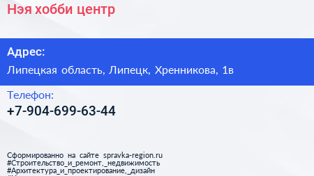 Нэя, хобби-центр по адресу Липецкая область, Липецк, Хренникова, 1в в дальнейшем Организация, размещена в следующих категориях: