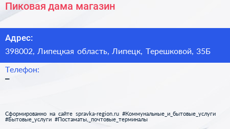 Пиковая дама, магазин по адресу 398002, Липецкая область, Липецк, Терешковой, 35Б в дальнейшем Организация, размещена в следующих категориях:
