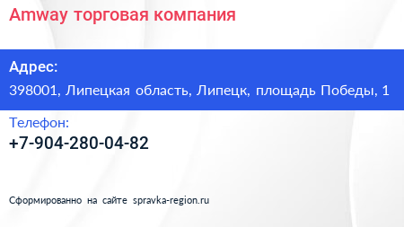 Amway, торговая компания по адресу 398001, Липецкая область, Липецк, площадь Победы, 1 в дальнейшем Организация, размещена в следующих категориях: