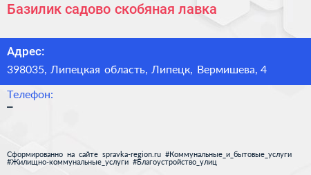 Базилик, садово-скобяная лавка по адресу 398035, Липецкая область, Липецк, Вермишева, 4 в дальнейшем Организация, размещена в следующих категориях: