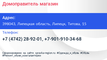 Домоправитель, магазин по адресу 398043, Липецкая область, Липецк, Титова, 15 в дальнейшем Организация, размещена в следующих категориях: