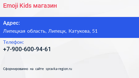 Emoji Kids, магазин по адресу Липецкая область, Липецк, Катукова, 51 в дальнейшем Организация, размещена в следующих категориях: