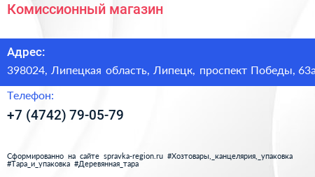 Комиссионный магазин по адресу 398024, Липецкая область, Липецк, проспект Победы, 63а в дальнейшем Организация, размещена в следующих категориях: