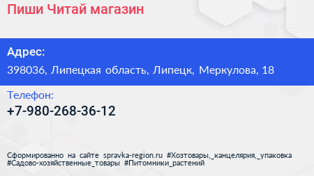 Пиши-Читай, магазин по адресу 398036, Липецкая область, Липецк, Меркулова, 18 в дальнейшем Организация, размещена в следующих категориях: