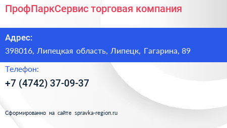 ПрофПаркСервис, торговая компания по адресу 398016, Липецкая область, Липецк, Гагарина, 89 в дальнейшем Организация, размещена в следующих категориях: