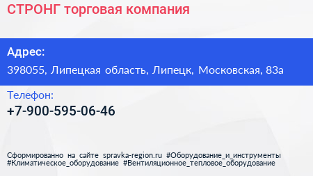 СТРОНГ, торговая компания по адресу 398055, Липецкая область, Липецк, Московская, 83а в дальнейшем Организация, размещена в следующих категориях: