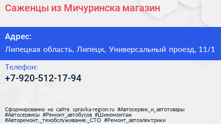 Саженцы из Мичуринска, магазин по адресу Липецкая область, Липецк, Универсальный проезд, 11/1 в дальнейшем Организация, размещена в следующих категориях: