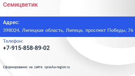 Семицветик по адресу 398024, Липецкая область, Липецк, проспект Победы, 76 в дальнейшем Организация, размещена в следующих категориях: