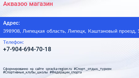 Аквазоо, магазин по адресу 398908, Липецкая область, Липецк, Каштановый проезд, 1 в дальнейшем Организация, размещена в следующих категориях: