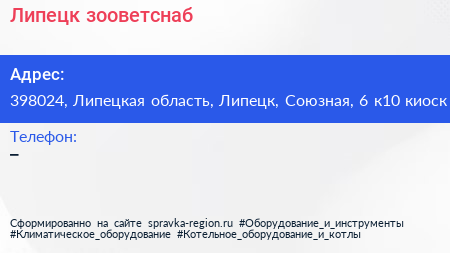 Липецк-зооветснаб по адресу 398024, Липецкая область, Липецк, Союзная, 6 к10 киоск в дальнейшем Организация, размещена в следующих категориях: