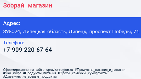 Зоорай+, магазин по адресу 398024, Липецкая область, Липецк, проспект Победы, 71 в дальнейшем Организация, размещена в следующих категориях: