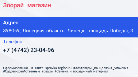 Зоорай+, магазин по адресу 398059, Липецкая область, Липецк, площадь Победы, 3 в дальнейшем Организация, размещена в следующих категориях: