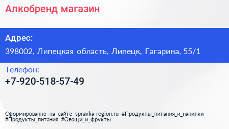 Алкобренд, магазин по адресу 398002, Липецкая область, Липецк, Гагарина, 55/1 в дальнейшем Организация, размещена в следующих категориях: