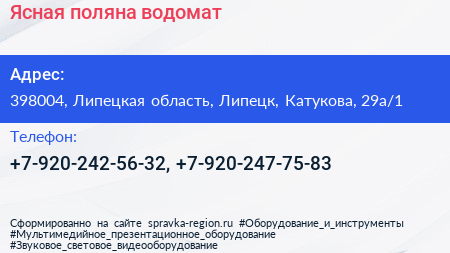Ясная поляна, водомат по адресу 398004, Липецкая область, Липецк, Катукова, 29а/1 в дальнейшем Организация, размещена в следующих категориях: