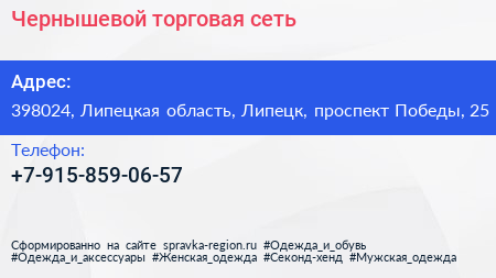 Чернышевой, торговая сеть по адресу 398024, Липецкая область, Липецк, проспект Победы, 25 в дальнейшем Организация, размещена в следующих категориях: