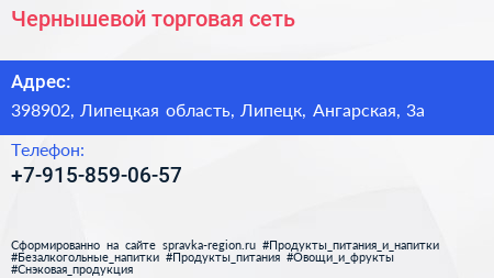 Чернышевой, торговая сеть по адресу 398902, Липецкая область, Липецк, Ангарская, 3а в дальнейшем Организация, размещена в следующих категориях: