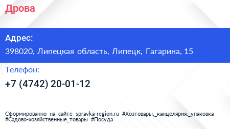 Дрова по адресу 398020, Липецкая область, Липецк, Гагарина, 15 в дальнейшем Организация, размещена в следующих категориях: