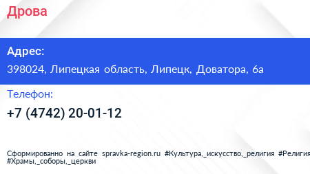 Дрова по адресу 398024, Липецкая область, Липецк, Доватора, 6а в дальнейшем Организация, размещена в следующих категориях:
