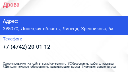 Дрова по адресу 398070, Липецкая область, Липецк, Хренникова, 6а в дальнейшем Организация, размещена в следующих категориях: