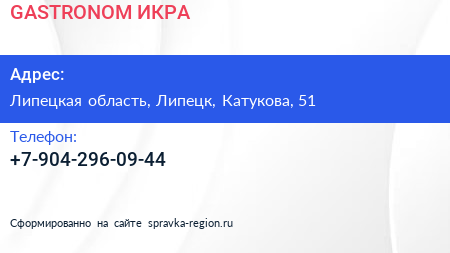 GASTRONOM ИКРА по адресу Липецкая область, Липецк, Катукова, 51 в дальнейшем Организация, размещена в следующих категориях: