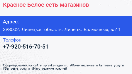 Красное & Белое, сеть магазинов по адресу 398002, Липецкая область, Липецк, Балмочных, вл11 в дальнейшем Организация, размещена в следующих категориях: