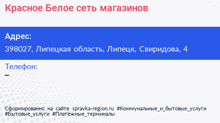 Красное & Белое, сеть магазинов по адресу 398027, Липецкая область, Липецк, Свиридова, 4 в дальнейшем Организация, размещена в следующих категориях: