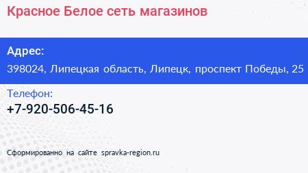 Красное & Белое, сеть магазинов по адресу 398024, Липецкая область, Липецк, проспект Победы, 25 в дальнейшем Организация, размещена в следующих категориях: