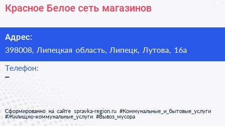 Красное & Белое, сеть магазинов по адресу 398008, Липецкая область, Липецк, Лутова, 16а в дальнейшем Организация, размещена в следующих категориях: