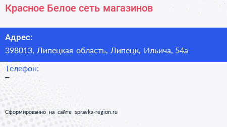Красное & Белое, сеть магазинов по адресу 398013, Липецкая область, Липецк, Ильича, 54а в дальнейшем Организация, размещена в следующих категориях: