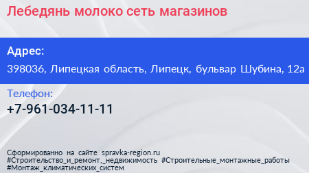Лебедянь молоко, сеть магазинов по адресу 398036, Липецкая область, Липецк, бульвар Шубина, 12а в дальнейшем Организация, размещена в следующих категориях:
