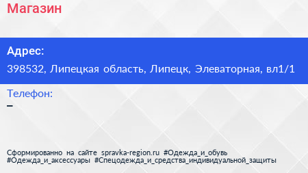 Магазин по адресу 398532, Липецкая область, Липецк, Элеваторная, вл1/1 в дальнейшем Организация, размещена в следующих категориях:
