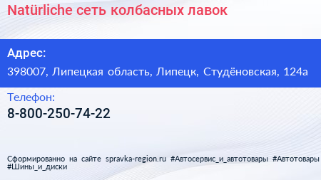 Natürliche, сеть колбасных лавок по адресу 398007, Липецкая область, Липецк, Студёновская, 124а в дальнейшем Организация, размещена в следующих категориях: