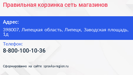 Правильная корзинка, сеть магазинов по адресу 398007, Липецкая область, Липецк, Заводская площадь, 1д в дальнейшем Организация, размещена в следующих категориях: