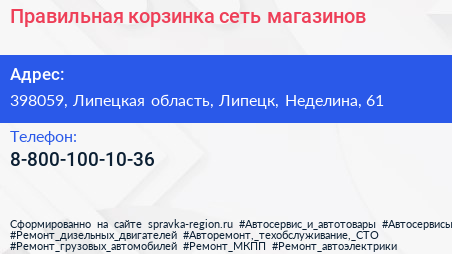 Правильная корзинка, сеть магазинов по адресу 398059, Липецкая область, Липецк, Неделина, 61 в дальнейшем Организация, размещена в следующих категориях: